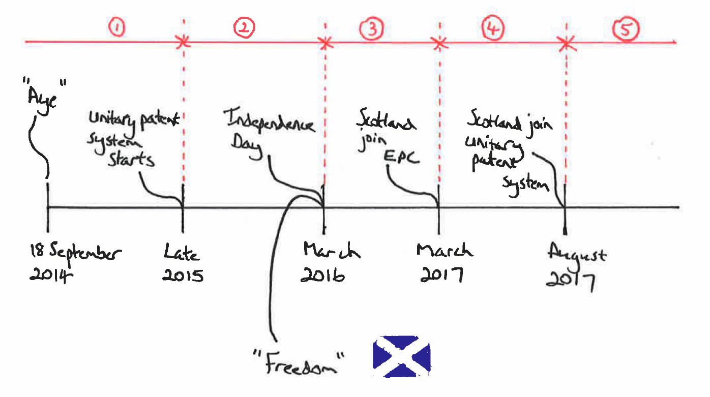If Scotland join the EPC on Independence Day then the above issue will not arise. If Scotland does not join the EPC on Independence Day then, given that around 300,000 applications are filed per year, there could be a significant number of patent applications that have the unitary patent route closed to them. The Scottish Situation is born….