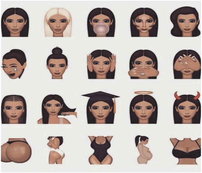 In recent years, there has been an emergence of brand-associated emoji fonts that are stylised in accordance with a brand or celebrity image. As an example, in 2015 Kim Kardashian launched her own line of emojis and stickers.